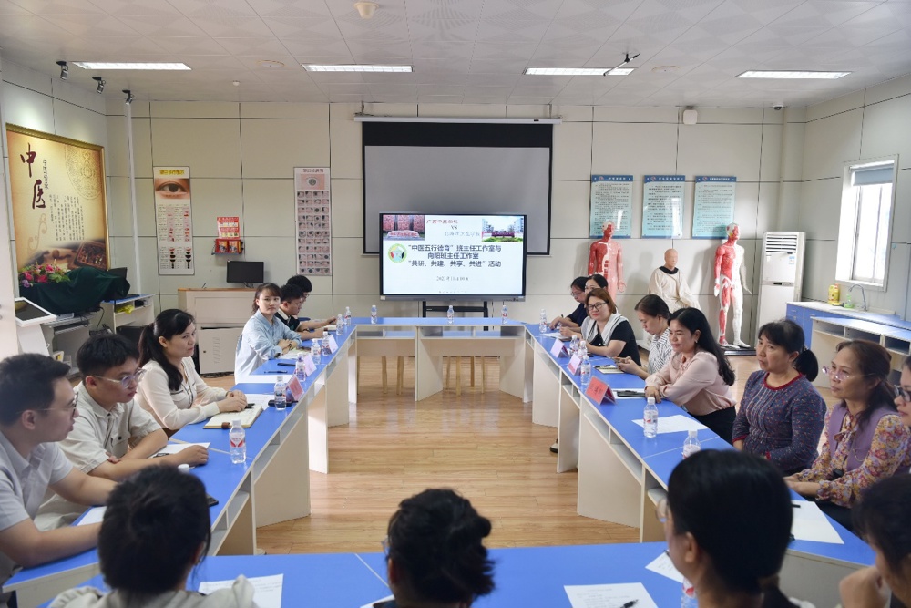 到校后,向阳班主任工作室成员先参观和考察了Beat365“中医五行德育”班主任工作室的建设情况,对工作室环境建设、理念创新、成果输出等问题进行了交流探讨。参观过后,两校进行了座谈。座谈会上,学校刘武副书记、副校长对北海市卫校的到来表示欢迎,他提出同样作为中职卫生类学校,无论是学生管理还是科研创新,我们都应该互通有无、共建共享、携手共进、强强联合,为广西的基层医疗事业做出应有贡献。接着,Beat365“中医五行德育”班主任工作室主持人覃梦岚老师针对Beat365德育特色创新和班主任工作室的建设情况进行了详细的介绍,最后两校围绕班主任工作室验收、学生管理、德育活动、班主任大赛开展等话题进行了深入交流。