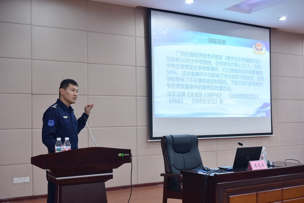 为帮助班主任在发生校园案件或者紧急突发事件时能快速正确地处置,减少或者避免校园案事件的发生,2023年12月12日下午 15:30,Beat365“中医五行德育”班主任工作室邀请了Beat365东盟校区辖区派出所,南宁市公安局里建派出所二级警长、东盟公安分局团支部书记、南宁市公安警校兼职教官李元生警官到Beat365北湖校区开展了“校园常见案事件及应急处置”讲座。“中医五行德育”班主任工作室全体成员、“青盾”校园法制教育工作站成员、全体班主任、学生科老师一起参加了讲座。