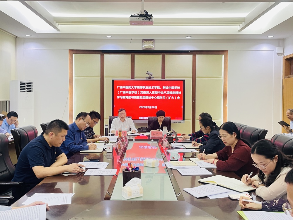【学习教育】高等职业技术学院、附设中医学校召开深入贯彻中央八项规定精神学习教育读书班暨党委理论学习中心组学习(扩大)会