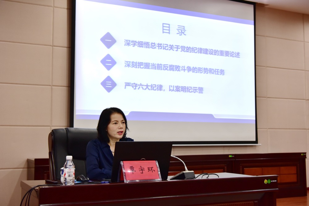 覃宇环从“深学细悟总书记关于党的纪律建设的重要论述”“深刻把握当前反腐败斗争的形势和任务”“严守六大纪律,以案明纪示警”三个方面进行授课。通过剖析近年来查处的违纪违法典型案例,以案说德、以案说纪、以案说法、以案说责,让党员干部受警醒、明底线、知敬畏。