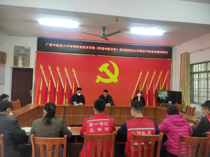 在2023年农历新春佳节来临之际,1月12日上午,高职院、附设中医学校党委副书记、副院(校)长刘武一行3人赴定点帮扶村隆安县南圩镇联伍村开展春节前走访慰问活动。