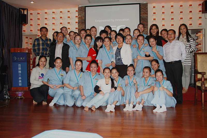 与深圳市百丽雅国际美容集团有限公司领导及部分实习生合影留念