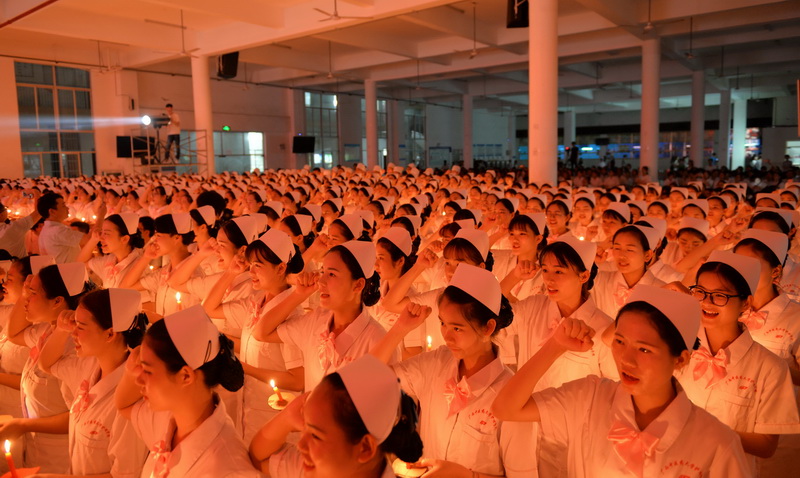 一袭圣洁的白衣是一颗纯洁的心灵,一顶别致的燕尾帽是一项守护生命的过程。授帽仪式在庄严而神圣的气氛中进行。接过护理老前辈谢集玲老师手中神圣的火种,护生们依次传递,象征着薪火相传;燃烧的红烛,象征着老师“燃烧自己,照亮他人”的精神,象征着南丁格尔精神所拥有的不灭光辉,象征着南丁格尔精神代代相传。神圣火种,在无言中刻画护理事业新老接替的神圣轮回。学生代表在发言中再一次表达了全体护生为护理事业奉献终身的坚定信念。在这神圣的时刻483名护生在南丁格尔像前庄严地许下了自己的誓言。