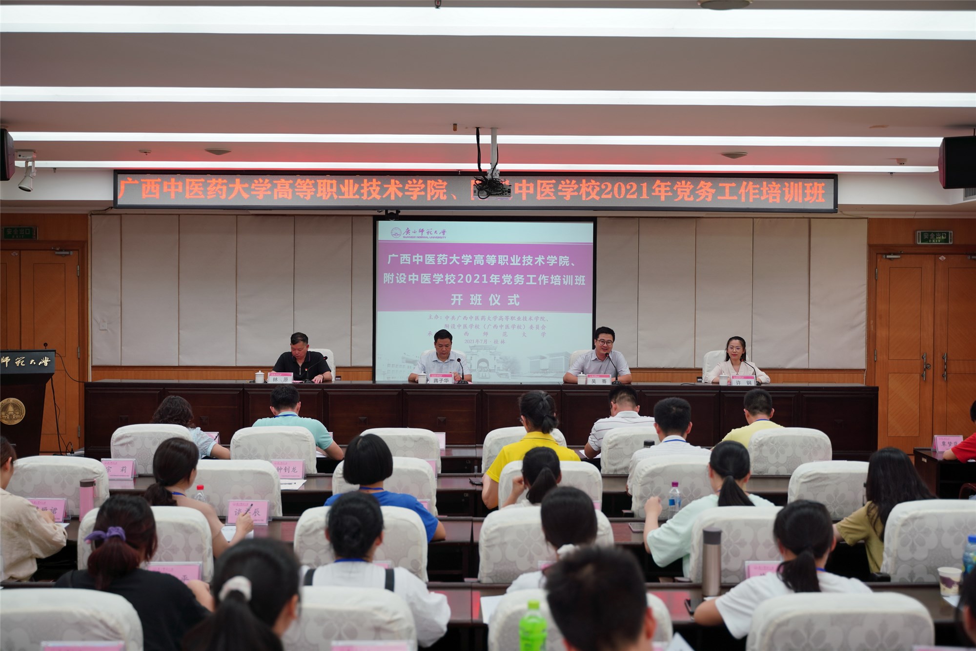 7月9日-11日,高职院、附设中医学校2021年党务工作培训班在桂林成功举办。此次培训班由高职院、附设中医学校党委主办、广西师范大学承办,在院(校)党委书记蒋子华带领下,副院(校)长林原以及各党支部支委、党员及学生代表共51人参加培训。