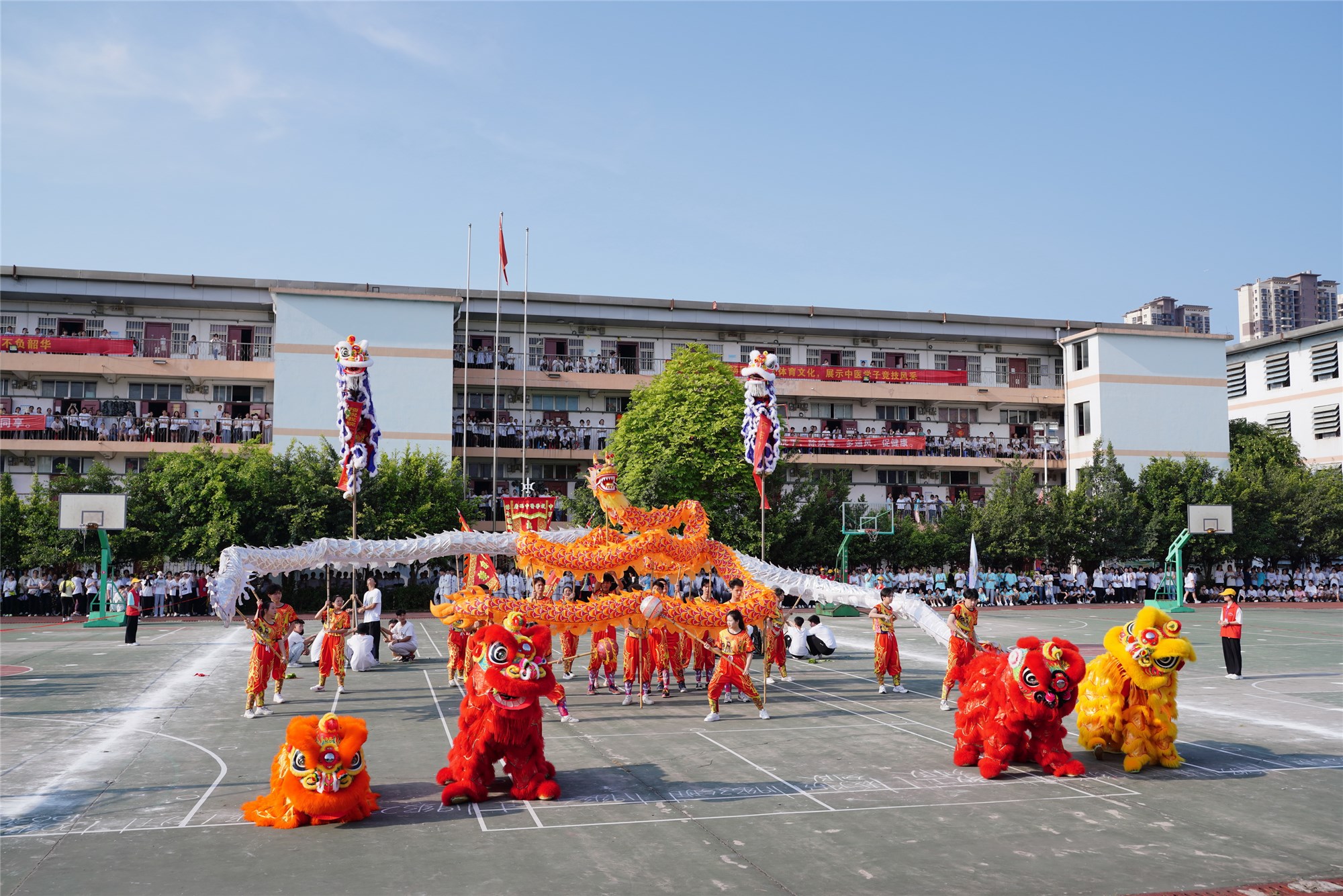 5月22日,高职院、附设中医学校2021年传统保健运动会成功在北湖校区田径场举行。院(校)领导班子、各部门负责人和全体同学参加开幕式。