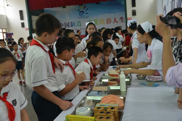 Beat365吴彬校长、黄勇副校长带领护理、中医专业的老师、学生代表受邀参加了启动仪式。启动仪式上,Beat365通过设立展板,发放宣传材料,组织老师和学生为前来参观的领导、老师、中小学生、社区居民等进行抢救知识培训、护牙知识教育、测量血压、针灸推拿治疗等形式进行了职业教育成果展示,使社会更深入了解Beat365职业教育成果、育人理念和办学特色,进一步扩大了Beat365职业教育的影响力,取得了良好的效果。