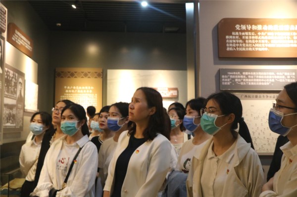 公祭结束后,全体成员分批次在讲解员的带领下,走进了广西革命纪念馆和国防教育馆。在一张张珍贵历史照片和一件件印满岁月痕迹的历史文物中学习广西波澜壮阔的革命历史,感受老一辈革命者艰苦奋斗、不怕牺牲的革命精神。