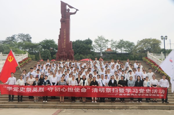 4月13日下午,护理学院党委组织党员、入党积极分子等116人前往广西革命烈士陵园开展“学党史祭先烈、守初心担使命”清明祭扫暨学习党史活动。护理学院党委副书记韩叶芬带队。
