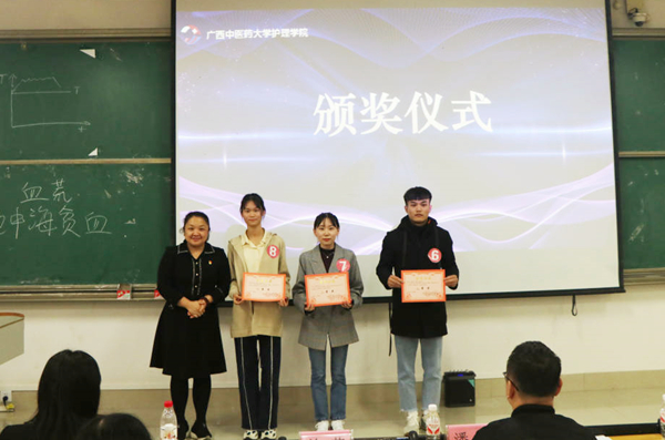 为提高护理学院学生护理教育教学能力,更好的发挥健康教育在维护人民健康的作用,促进同学们的全面发展。护理学院于11月19日下午举办第一届护理学院学生讲课大赛。学校学生工作处思政科科长潘立老师,护理学院护理基础教研室主任兰艺老师、临床护理教研室蓝红霞、凌芸及潘敏三位老师担任本次比赛的评委,共有九个参赛队参加本次比赛。