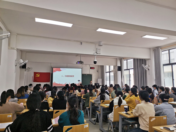 护理学院2021年秋季发展对象党课培训班开班仪式以线上线下的方式于2021年12月11日上午在学校明秀校区顺利举行。护理学院党委书记、院长吴彬,学院党委委员、学生第四党支部书记蓝红霞,学生第一党支部书记何瑞婷,学生第四党支部副书记高旭及2021年秋季发展对象共42名同学参加了本次开班仪式。