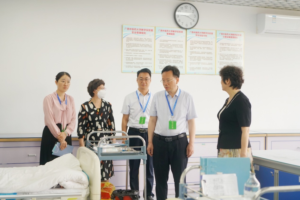 为全面了解本学期护理学院教学运行及新一轮本科教育教学审核评估工作的落实情况,5月17日,学校党委书记莫锦荣、党办主任徐方明、教务处处长莫雪妮等一行7人到护理学院开展期中教学检查,本次检查工作包括实地走访、听取汇报、检查材料、座谈会四个方面。
