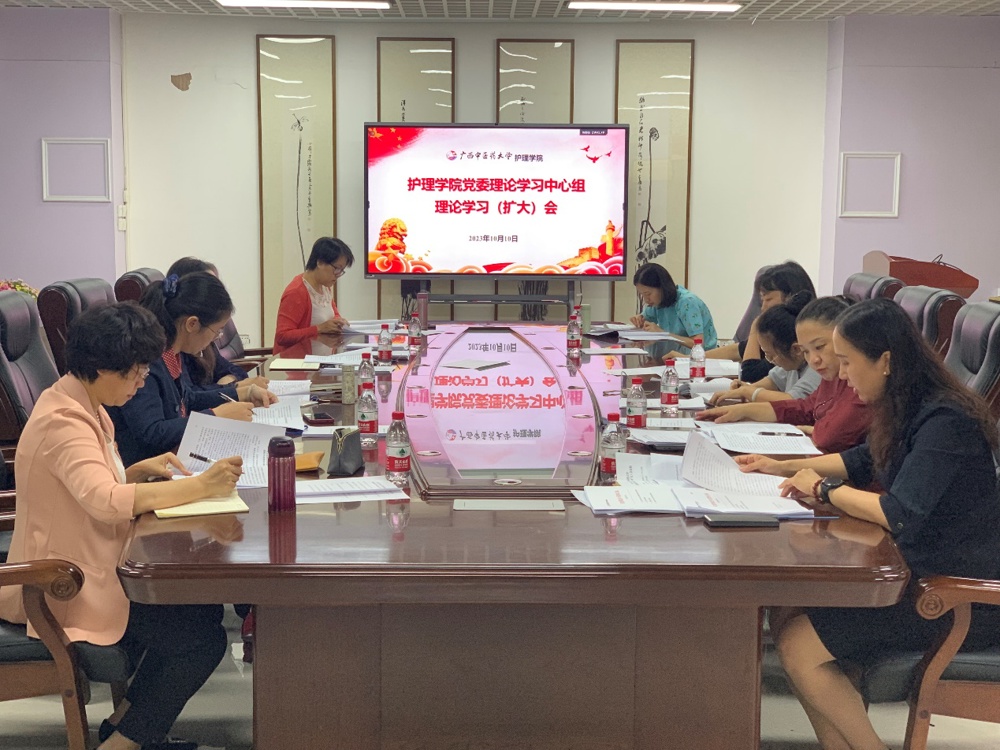 10月10日上午,护理学院党委在自诚楼C503举行了党委理论学习中心组学习(扩大)会,护理学院党委副书记韩叶芬主持学习会,中心组成员、各党支部书记参加会议。