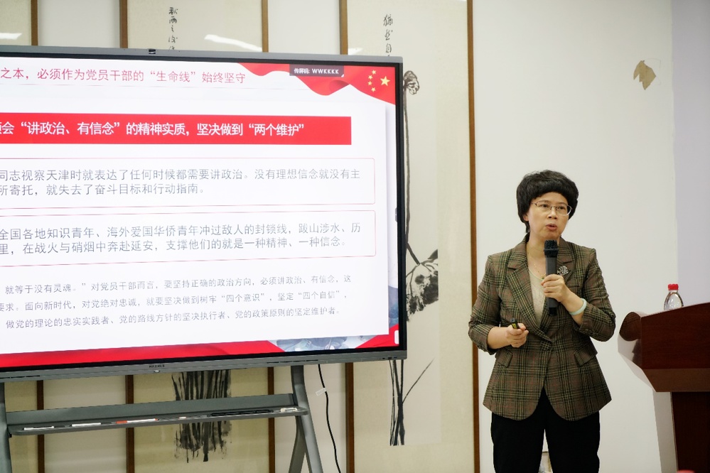 马秋平围绕《绝对忠诚 敢于担当 作风正派 干净廉洁——争做忠诚担当正派廉洁党员干部》主题进行授课。她强调,绝对忠诚是每位党员的底线,是从政之本,党员干部要时刻保持对党的绝对忠诚,将其视为“生命线”来履行自己的职责使命;敢于担当是每名党员的应尽之责,党员干部要挑起重担,争做先锋,成为党的事业的积极参与者和推动者;作风正派是党员的基本素养,党员干部应该时刻保持高尚的政治道德风范;干净廉洁是立身之本,成事之基。党员干部要常怀廉耻之心,严守廉洁底线,始终保持清正廉洁的政治本色。