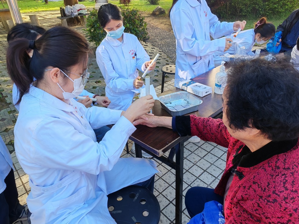 本次志愿服务以义诊形式开展,内容主要包括艾灸、测血压、测血糖等健康服务以及日常健康知识宣教。在活动的过程中,各位同志积极为居民进行健康检查,主动向社区居民讲解慢性疾病的预防及日常注意事项,帮助其树立“早发现、早诊断、早治疗”理念。支部党员同志以阳光饱满的精神面貌、严谨认真的专业态度,获得了社区居民的一致认同。