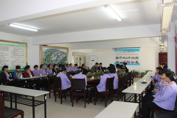 2016年3月25日上午9时,后勤处张春处长、李玲副处长及主管保洁、宿管工作的后勤处相关人员,与朋宇组物业公司总经理彭辉及朋宇组全体员工召开了2016年春季学期第一次宿舍管理与保洁工作会议。