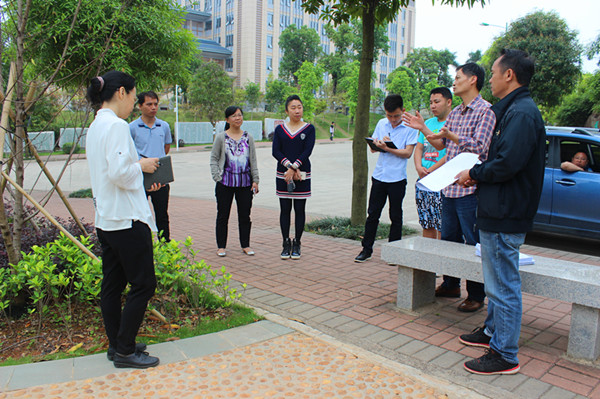 首先验收小组成员来到桃李园,后勤处黎锦源副处长对验收相关情况进行说明,校园管理中心黄浩主任对这两个绿化项目工程进行详细介绍,并把相关工程资料分发给验收小组成员查看。随后,验收小组成员严格按照学校验收相关管理规定逐一对这两个绿化工程仔细核对树种及品种、存活率、冠幅大小及整体设计效果等,验收小组成员一致认可这两个绿化项目工程,同时指出一些细节整改内容,施工方表态将按照校方要求完善后续工作。