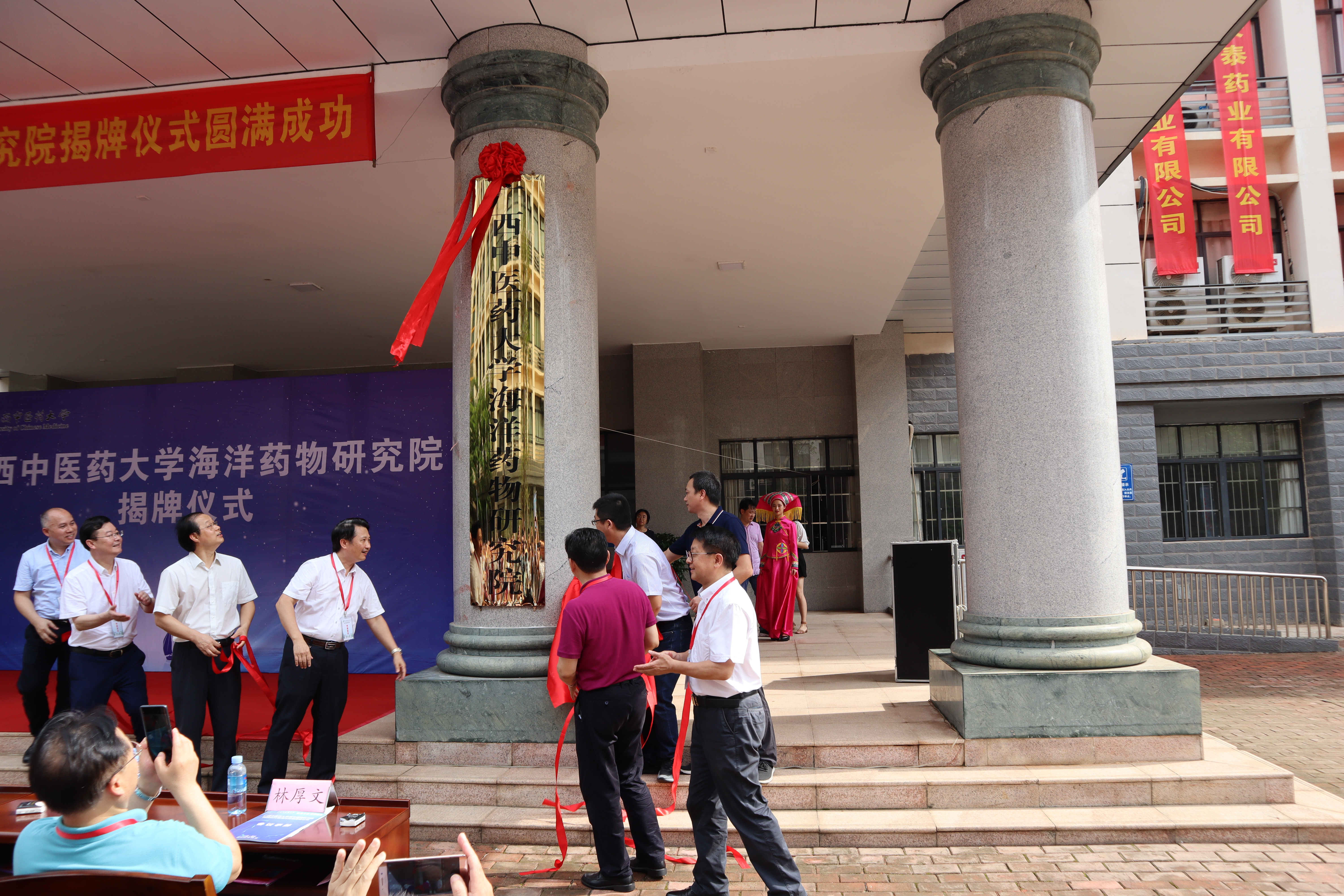 揭牌仪式上,蒋和生、庞宇舟、戴铭、黎甲文、张士军、焦炳华、谭仁祥、刘永宏等为海洋药物研究院揭牌。