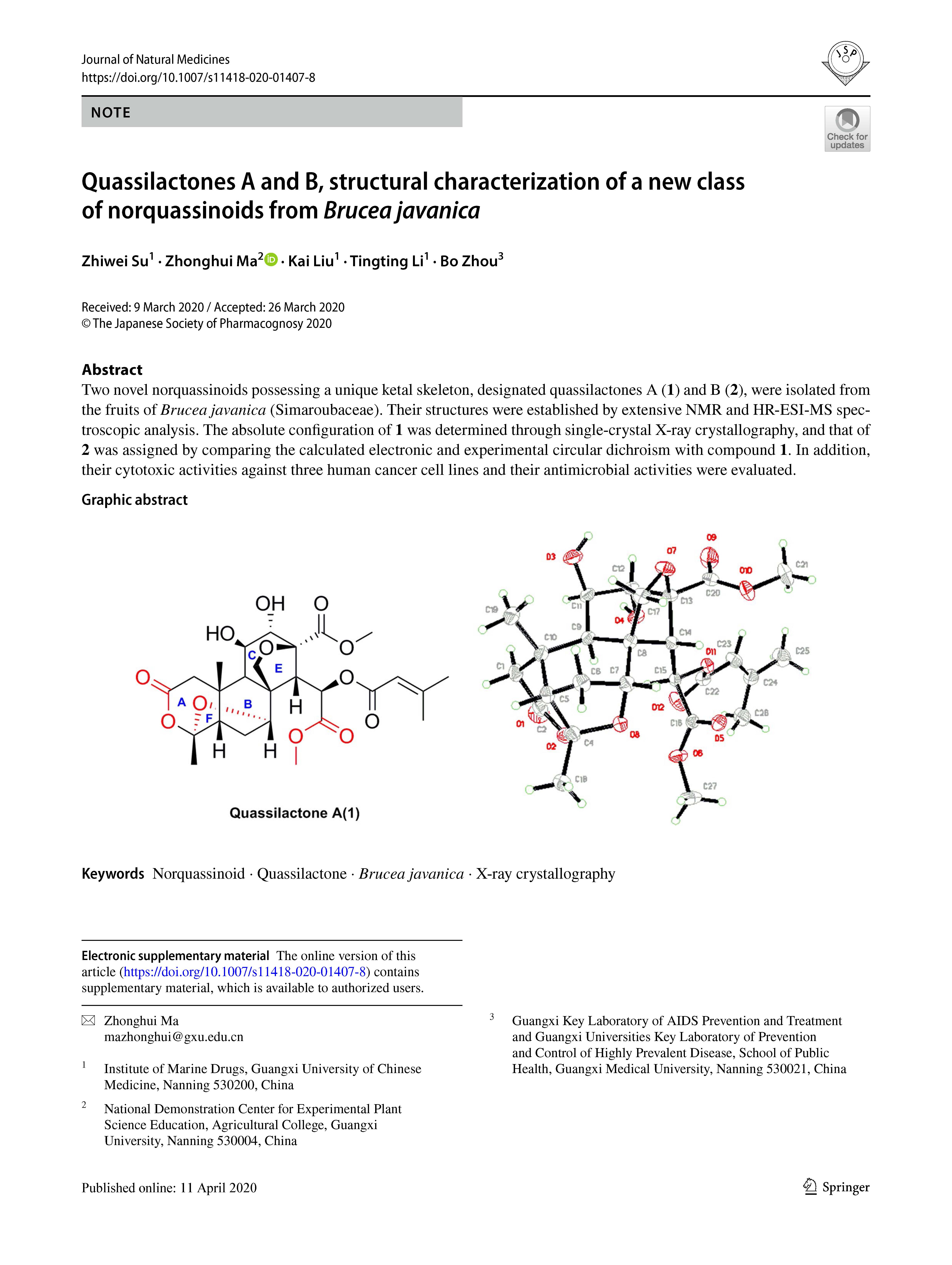 2020-Quassilactones A and B, structural characterization of a new class of norquassinoids from Brucea javanica