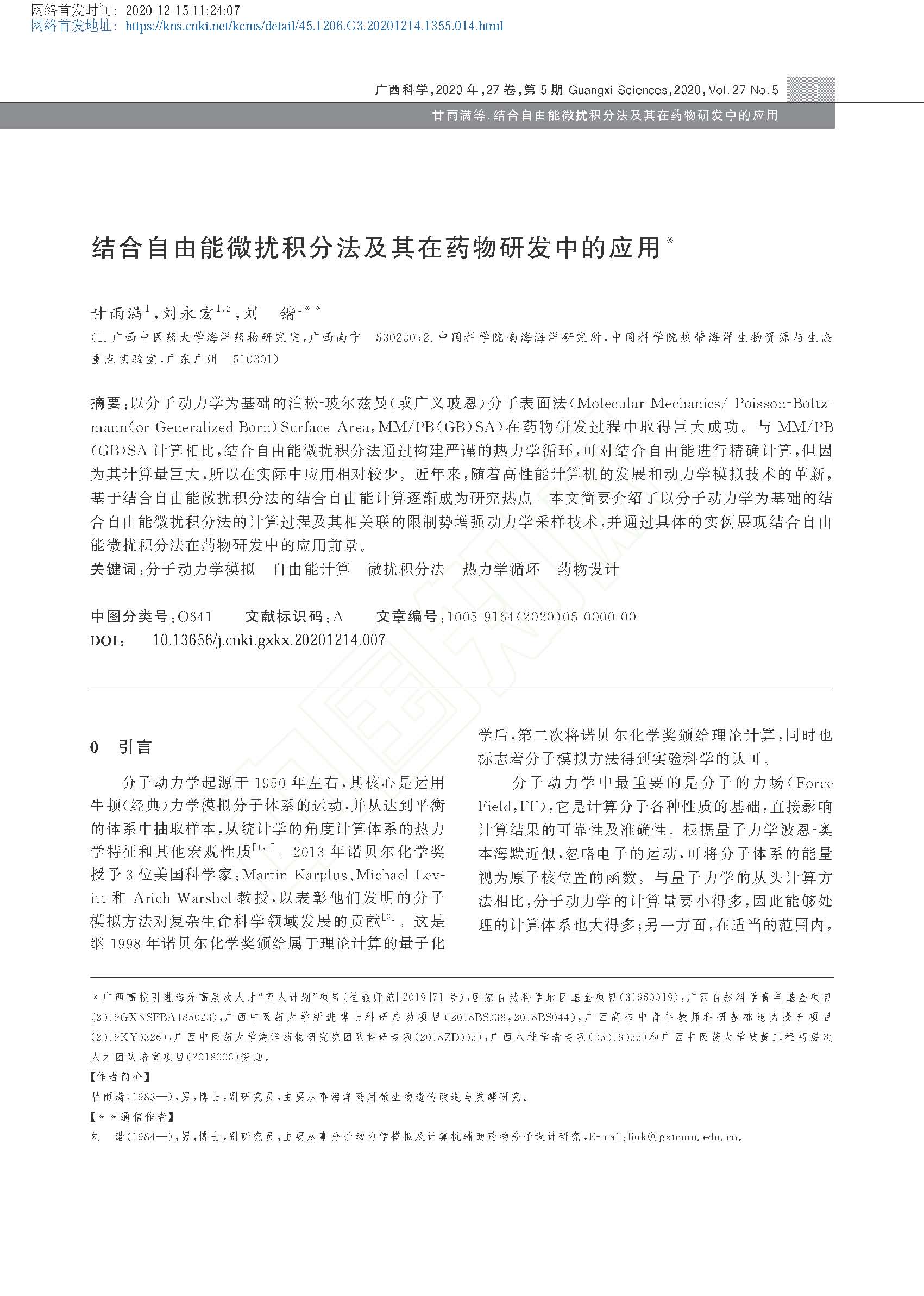 2020-结合自由能微扰积分法及其在药物研发中的应用