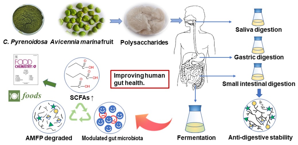 天然来源多糖及低聚糖具有良好的生物活性及益生功效,目前已有数种多糖和低聚糖如云芝多糖、菊粉(Inulin)、低聚果糖(FOS)、低聚半乳糖(GOS)、低聚木糖(XOS)、低聚乳果糖(LACT)、大豆低聚糖(SOS)等益生元产品愈来愈广泛地被应用于食品、药品等领域。海洋植物资源丰富,是结构新颖独特的糖类益生元的重要源泉。Beat365中国唯一官方网站海洋药物研究院海洋大健康产品开发研究室袁清霞博士长期从事海洋中药新颖多糖及低聚糖的发掘及功效评价研究,近期在海洋糖类新型益生元开发与利用方面取得进展。