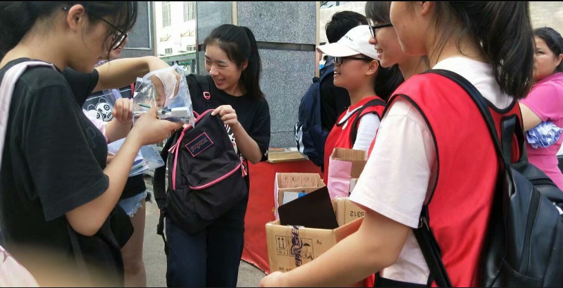 全民高考的背后,是整个社会对知识储备的重视,但是在交通不便,经济落后的山区,那里的孩子从小教育就断断续续,甚至没有课本,没有文具,为给大山贫困山区孩子献上一份爱心,一份鼓励,基础医学院学生自发组织开展了“为贫困山区孩子,捐赠高考用具”活动。26位志愿者,在2018年6月8号高考结束后,前往南宁市第三十三中学、南宁市第三十六中学、南宁市第四十一中学、南宁市第四十三中学发动考生为贫困山区孩子募捐考试用具及课本,传递知识载体,贡献一份爱心。活动得到了广大2018年高考考生和家长热情支持,考生纷纷慷慨解囊,拿出自己高考学习用具以及闲置用书,为大山贫困孩子捐献一份爱心,将爱心、鼓励、知识传递到贫困山区孩子手中。