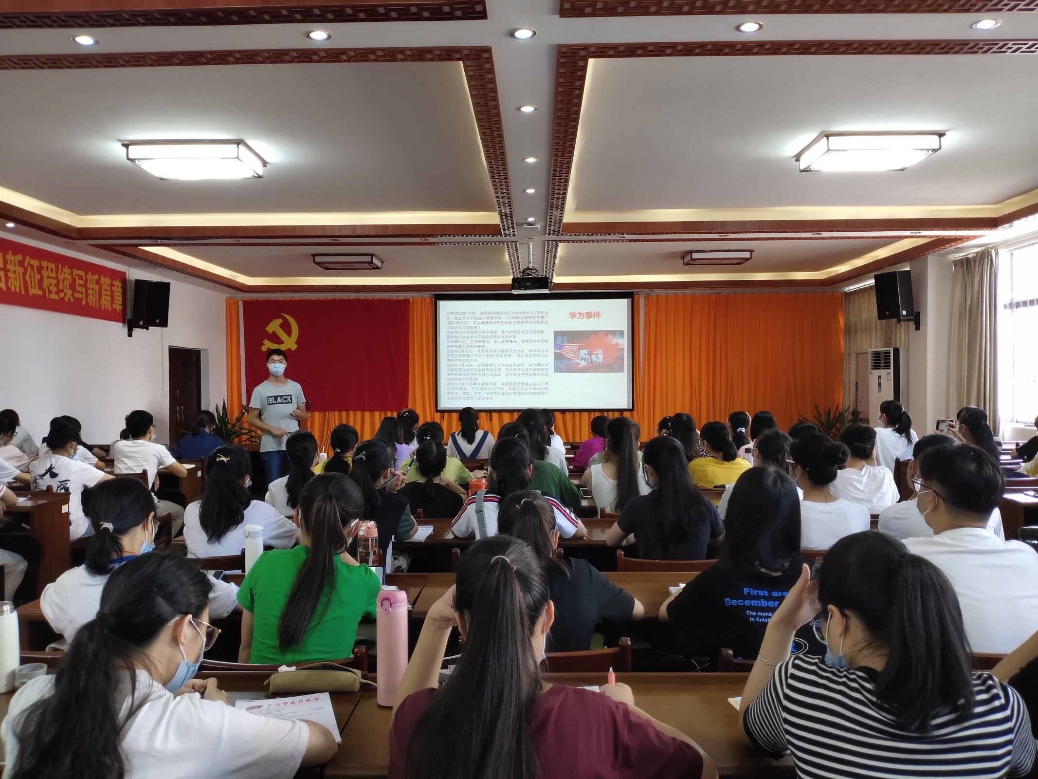 党课内容主要围绕“创新是引领发展的第一动力,是建设现代化经济体系的战略支撑”,阐述了十九大提出的科技强国的总体要求,要求加快建设创新型国家,要瞄准世纪科技前沿,强化基础研究,实现前瞻性基础研究、引领性原创成果重大突破。结合中兴、华为事件等案例,分析了当前全球科技创新发展趋势以及我国建设科技强国面临的形势、任务和存在的差距,重温了习近平关于科技创新的重要思想,进一步警示当代国际社会依然是靠实力说话,弱肉强食、适者生存,核心技术是我们最大的命门,核心技术受制于人是我们最大的隐患。