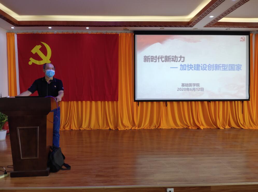 为提高基础医学院入党积极分子的党性修养,积极开展入党积极分子教育工作,落实党员发展政策,做好我院学生党员的发展工作,6月12日,基础医学院党委书记龚名师、组织员潘雄泽在达道楼A305给第20期入党积极分子上了一堂题为“新时代新动力—加快建设创新型国家”专题党课。