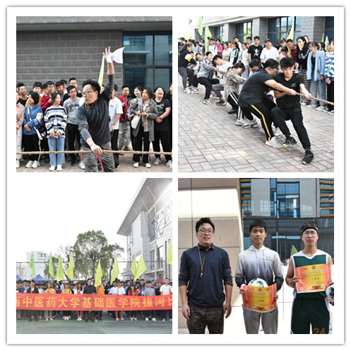 为增强学生体育锻炼意识,培养创造积极进取和健康良好生活、学习习惯、营造健康阳光的校园氛围,推动校园精神文明建设,2020年10月24日基础医学院特举行了基础医学院第三届大学生拔河比赛。
