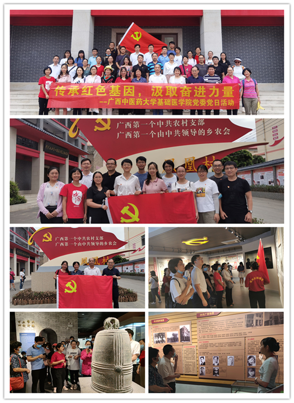 在新民主主义革命时期,梧州是广西的革命摇篮。历史川流不息,精神代代相传。为了弘扬光荣传统、赓续红色血脉,永远把伟大建党精神继承下去、发扬光大,基础医学院党委领导班子及教工党支部、学生党支部教师代表43人于7月20日赴梧州开展红色革命教育党日活动。