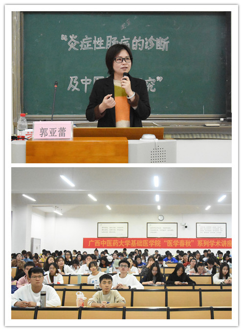为了丰富基础医学院大学生课余学习生活,营造良好学术交流氛围,增强大学生中医学习思维,基础医学院于12月16日下午在仙葫校区1-207教室举办“医学春秋”系列学术讲座之《炎症性肠病的诊断及中医治疗研究》,由郭亚蕾副教授主讲,基础医学院近200名同学参加此次讲座。