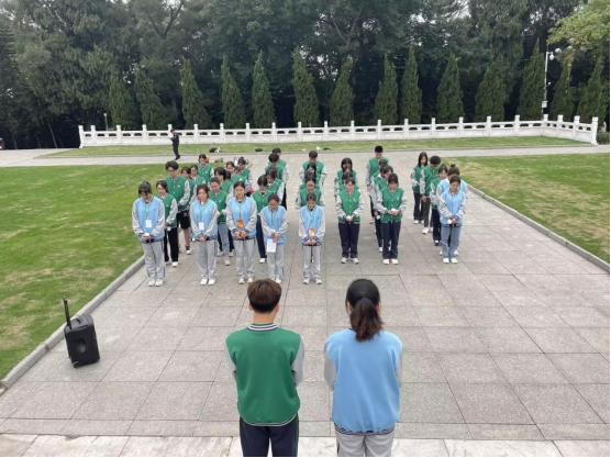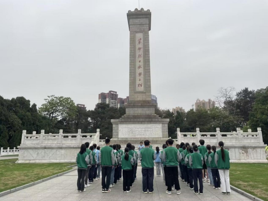 2023年4月9日清晨,党务助理带领入党积极分子组队出发,9:30到达目的地——南宁市人民公园,同学们排队有序入场参观。大家依次参观了炮台、毛泽东接待各族人民纪念馆最后来到烈士纪念碑进行缅怀仪式。重观炮台,我们又一次震撼于炮台的威武身姿。站在毛泽东接待各族人民纪念馆中,入党积极分子们认真的观看墙上的记载,并用相机记录了下来。看到那些陈年旧迹仍能感受到毛主席当年忙碌的身影,微风吹来,吹来了毛主席的喃喃细语。我们由衷的感谢伟人们为中华民族大团结做出的卓越贡献。大家来到烈士纪念碑,由党务助理主持,带着我们一起缅怀先烈,我们全体默哀三分钟,为英勇就义的革命烈士,为那面用献血染红的五星红旗,为现在这块中国人民解放军用双手打下的大好河山。最后我们献出小白花,合影留念。