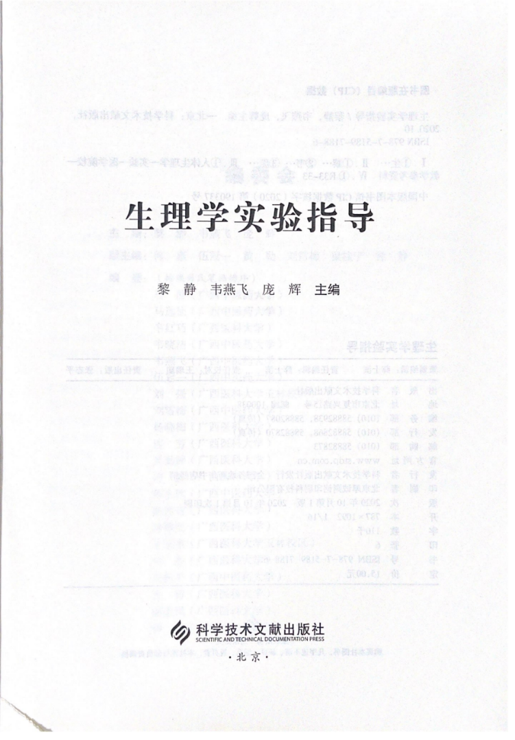 教研室教师积极参与《生理学实验指导》编写 发布时间:2023-05-08 14:59:42 浏览次数: 次 【字体:小 大】 1.主编(韦燕飞)、副主编(伍冠一、刘雪梅、钟静)、编委(马静、陈永欣、马远征、周艳平、韦晓洁),《生理学实验指导》,科学文献出版社,2020 分享到: 【打印正文】