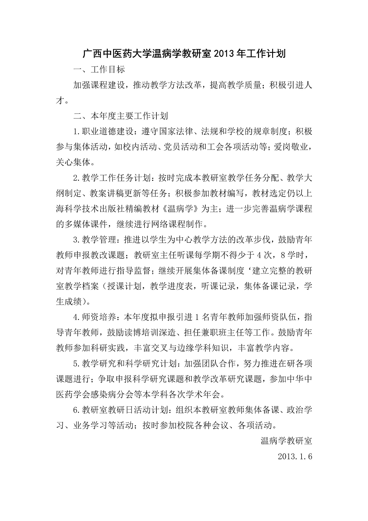 2013年教研室工作计划