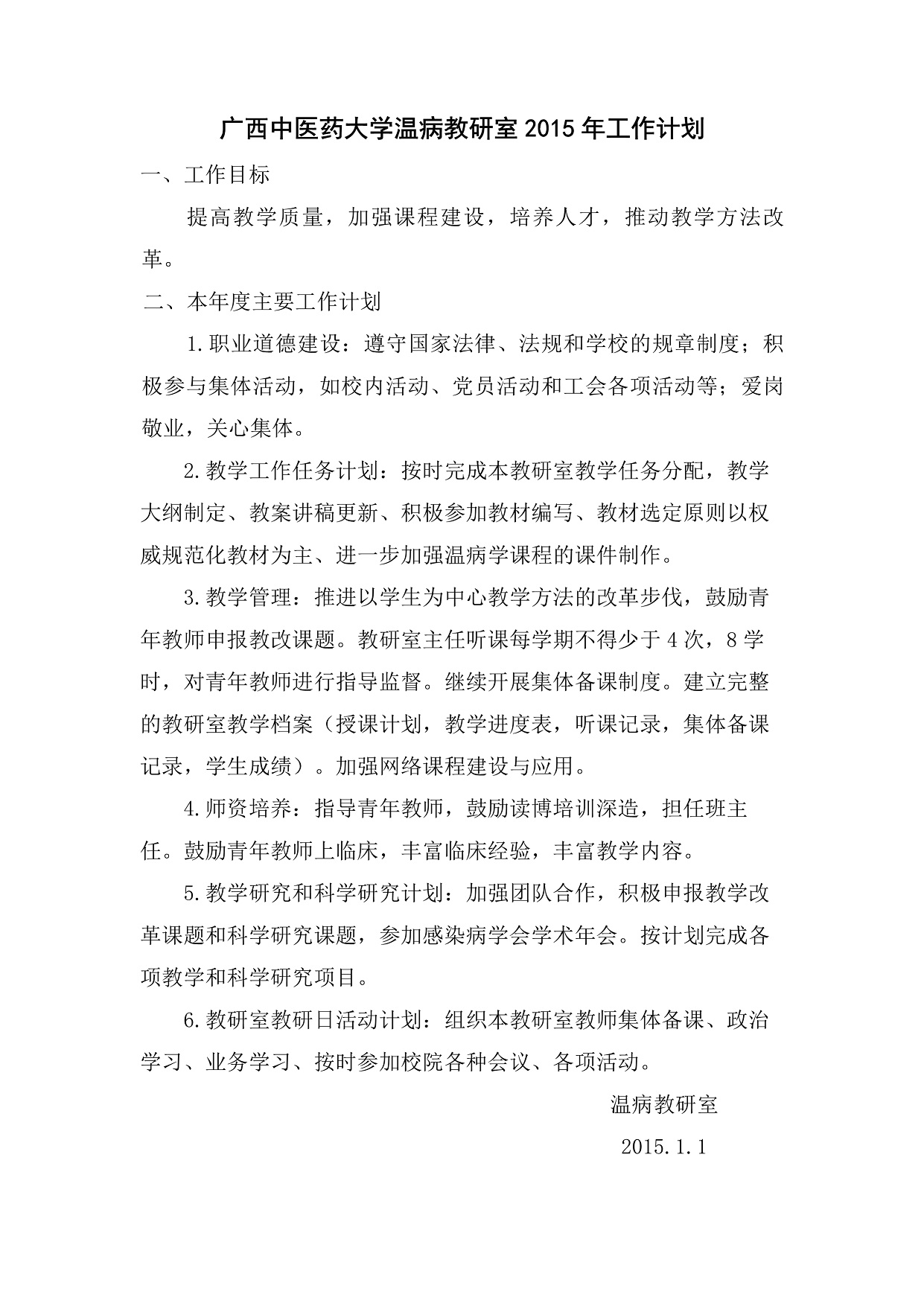 2015年教研室工作计划