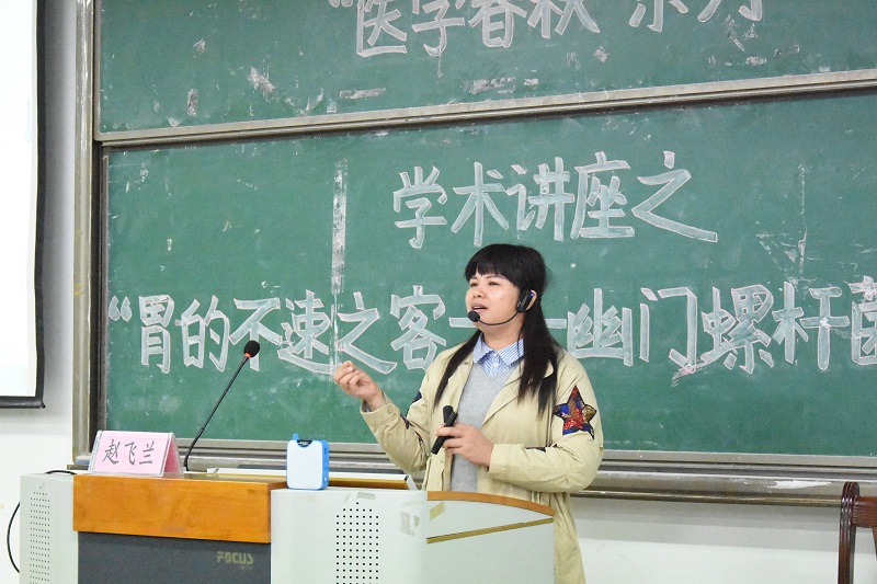 赵飞兰老师为学生进行题目为《胃的不速之客——幽门螺旋杆菌》学术讲座