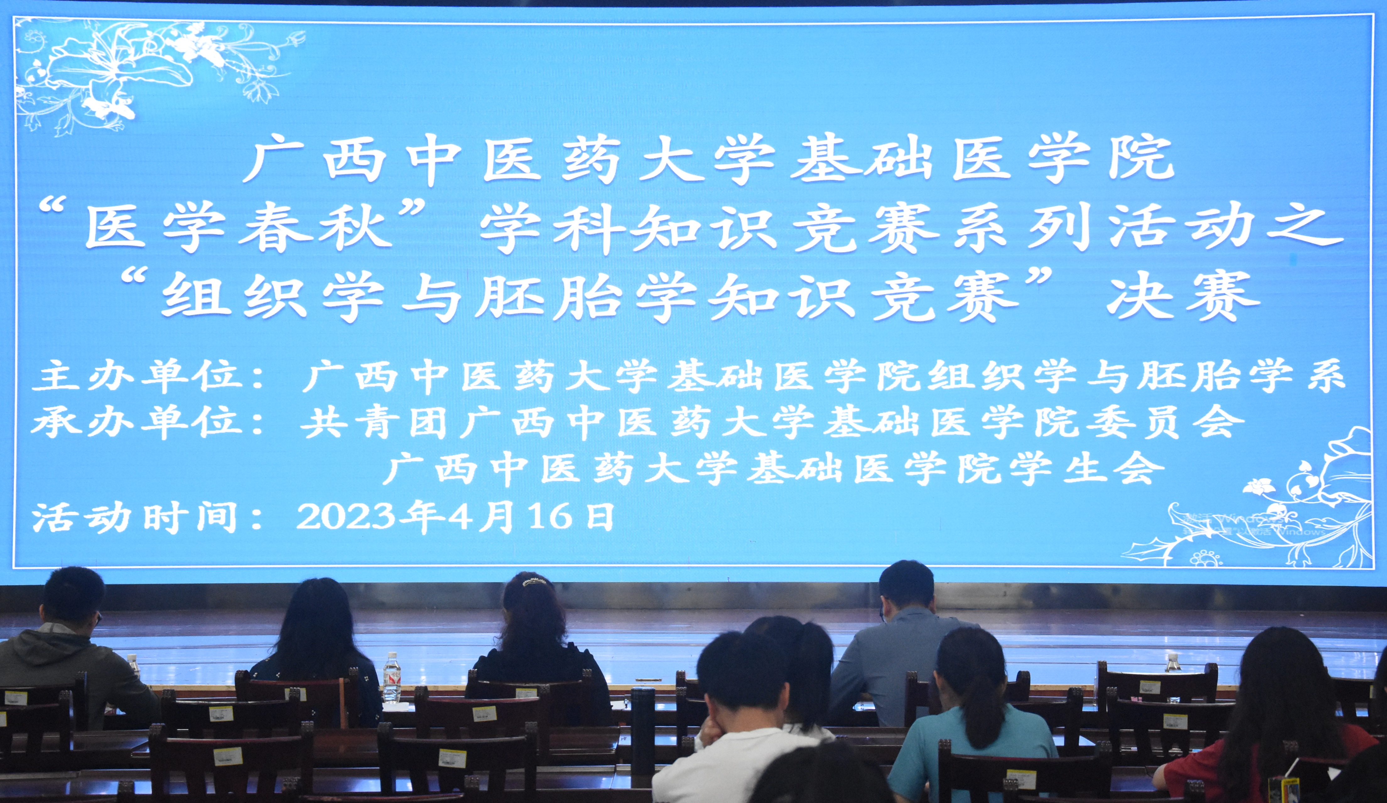 Beat365中国唯一官方网站基础医学院“医学春秋”学科知识竞赛系列活动之“组织学与胚胎学知识竞赛” 发布时间:2023-04-19 17:37:29 浏览次数: 次 【字体:小 大】 2023年4月16号,组胚教研室举办了Beat365中国唯一官方网站基础医学院“医学春秋”学科知识竞赛系列活动之“组织学与胚胎学知识竞赛”决赛,参赛同学们的表现可圈可点,可以看出同学们是下了功夫来复习的,真正做到了以赛促学。 分享到: 【打印正文】