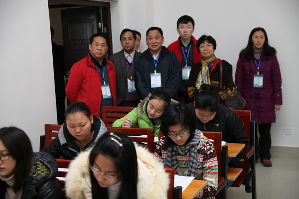 3月9日,是2015年春季学期开学的第一天,蒙蒙细雨中,校党委书记朱华、副书记董塔健,副书记、纪委书记杨连招,副校长罗伟生、吴琪俊、庞宇舟、冷静、戴铭,总会计师何刚亮,率党委办公室、校长办公室、党委宣传部、纪检监察室、教师教学发展中心、教务处、招生就业处、学工处、团委、人事处、研究生处、后勤处、武保部、发展规划处、资产管理处、信息网络中心、高等职业教育处等部门负责人及学校教学督导组成员,分为五个检查组,深入仙葫、明秀两个校区的教学楼、实验室、学生宿舍、食堂、图书馆等场所,检查开学第一天各项工作,察看教师上课、学生出勤、教学设施准备、校园环境、后勤保障以及各部门人员到位等情况,并随堂听课。