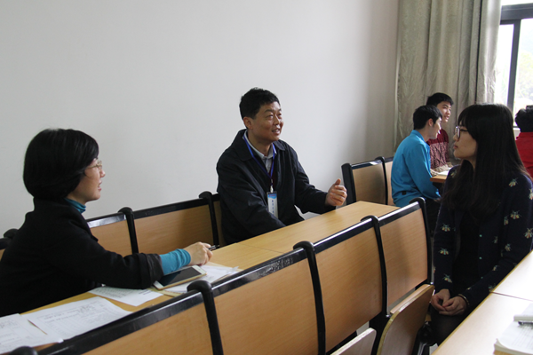 尤剑鹏书记随堂听课后与授课教师交流