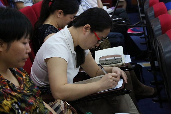 教师认真记录笔记
