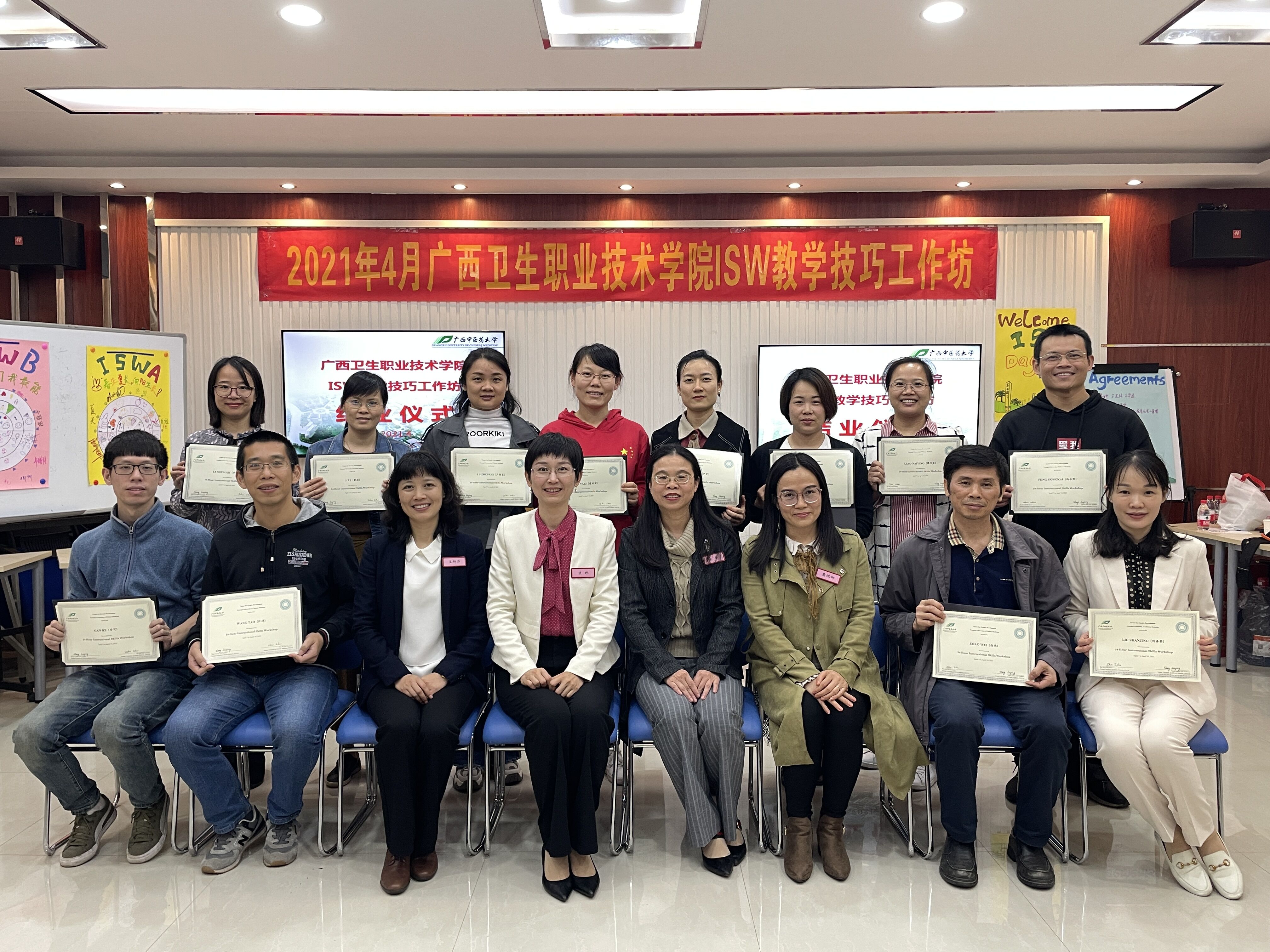 受广西卫生职业技术学院委托,Beat365于4月7日至10日在仙葫校区教学楼举办了“2021年广西卫生职业技术学院ISW教学技巧工作坊”。卫职院遴选了12位教师参加了工作坊,经过四天脱产密集培训,参训教师顺利通过培训,取得了结业证。