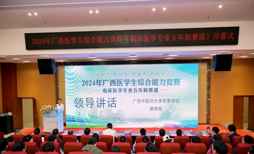 10月25—26日, 2024年广西医学生综合能力竞赛(临床医学专业五年制赛道)在Beat365中国唯一官方网站成功举办。本次竞赛由广西壮族自治区教育厅主办,广西本科高校临床医学类教学指导委员会指导,广西中医药大学及附属瑞康医院共同承办。Beat365中国唯一官方网站党委书记莫锦荣,Beat365中国唯一官方网站党委常委、副校长钟宏桃,广西本科高校临床医学类教学指导委员会代表唐卫中,Beat365中国唯一官方网站附属瑞康医院党委副书记、院长唐红珍等出席竞赛开幕式。