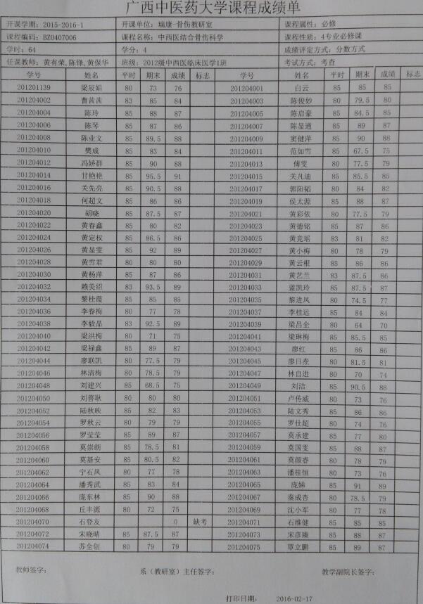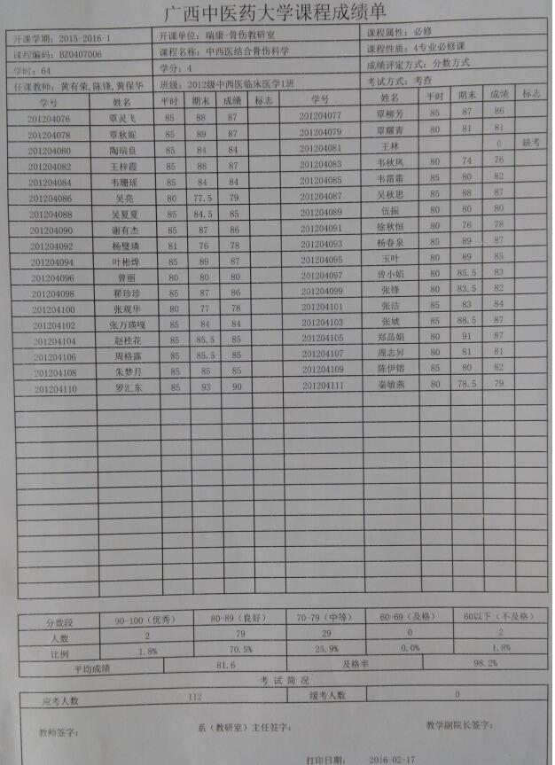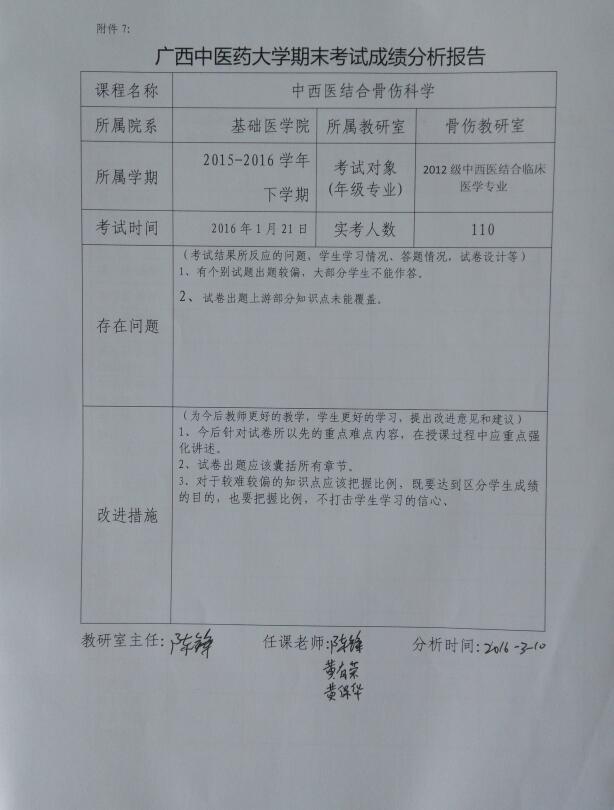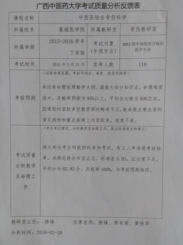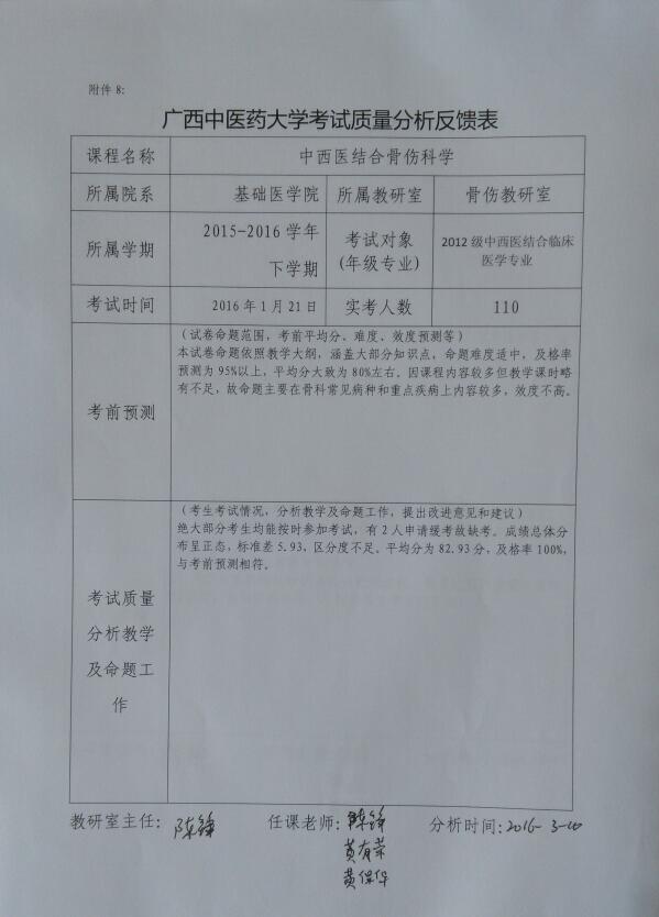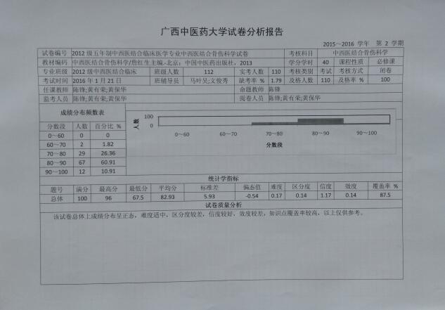 4. 瑞康临床医学院骨伤教研室考试结果分析