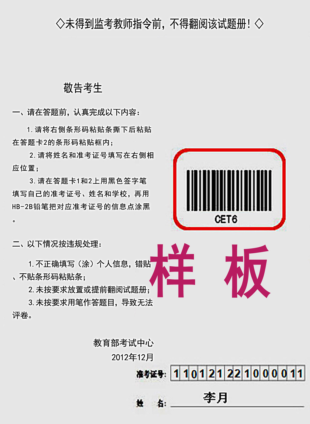 为了防范愈演愈烈的利用通讯手段进行的考试作弊,教育部考试中心决定从2012年12月起大学英语四、六级考试在同一考场内使用多套试卷,即多题多卷。为了保证考试顺利进行,现将最新考试要求通知如下: