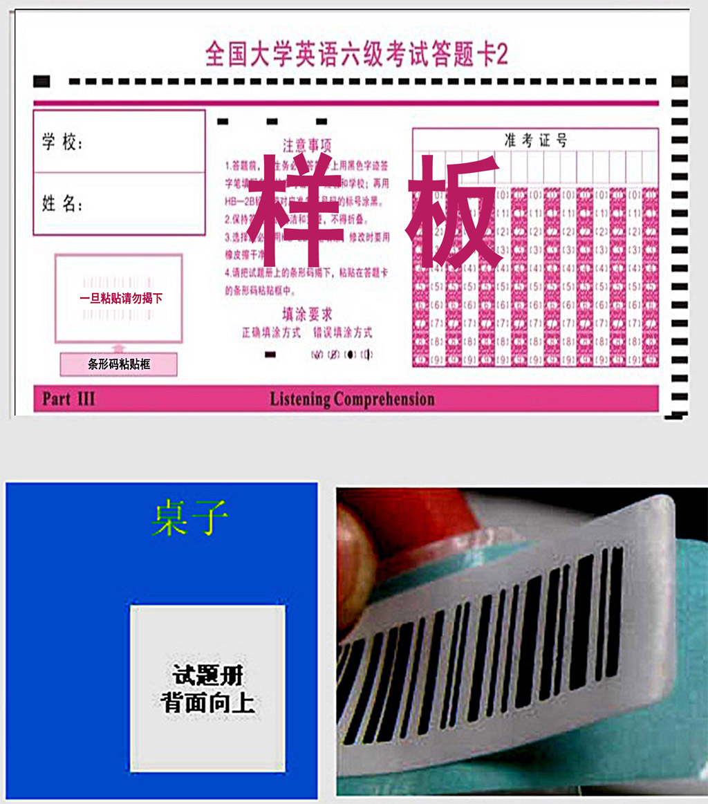 4. 请考生粘贴条形码时务必认真仔细,条形码一经粘贴后不能揭下来重贴,撕毁条形码或粘贴不当造成的后果由考生自行负责。