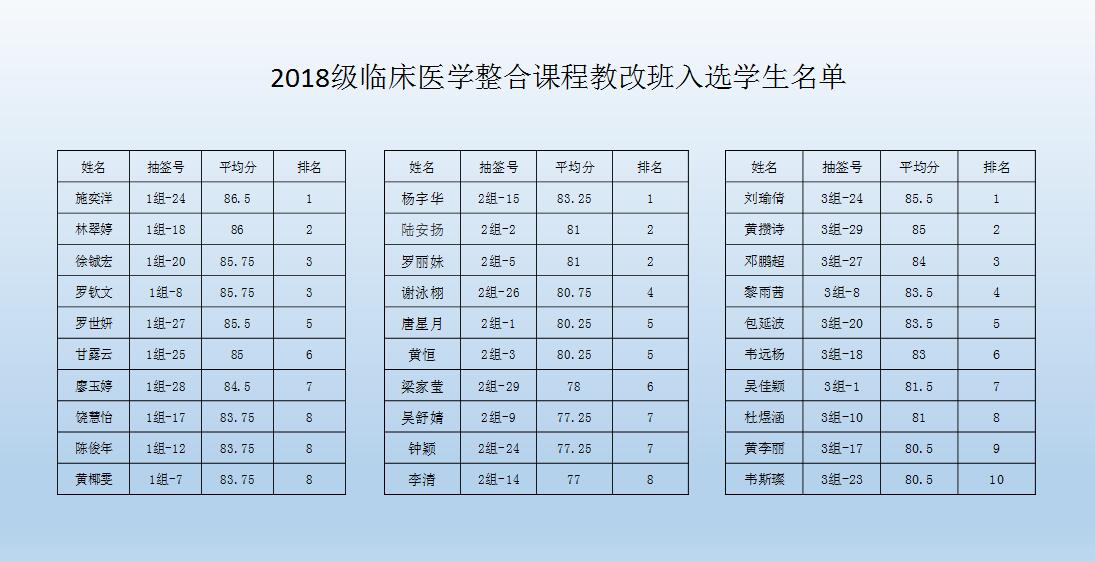 Beat365中国唯一官方网站2018年临床医学整合课程教改班学生入选名单公示