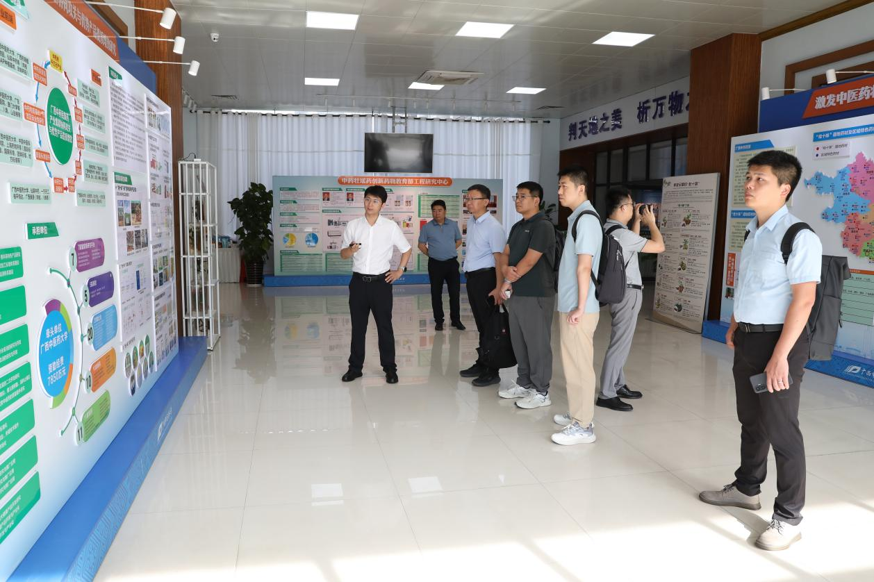 调研组一行还专程前往中医药壮瑶医药研究院了解“桂十味”道地药材研发进展及学校在中医药、民族医药领域的科研成果。