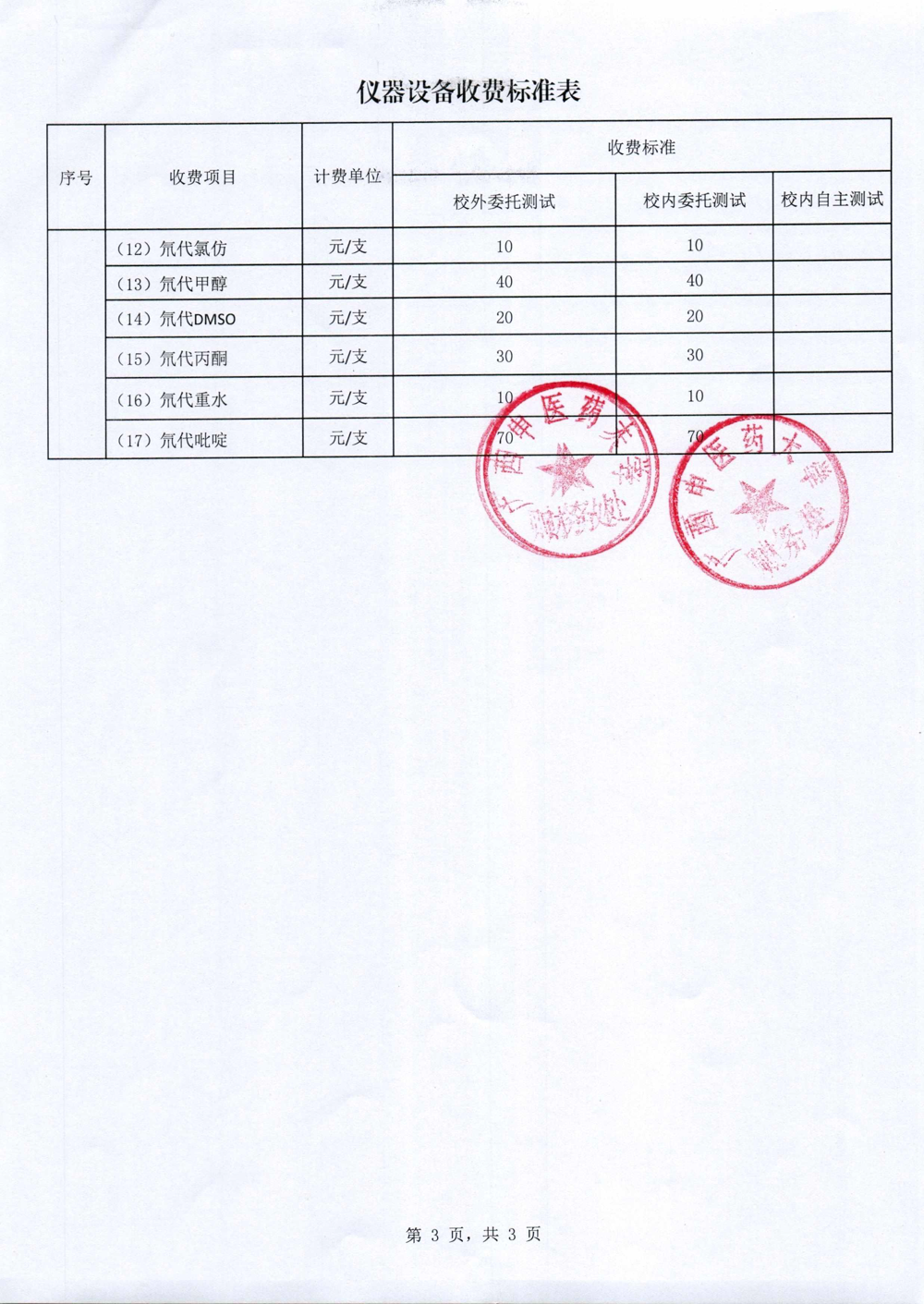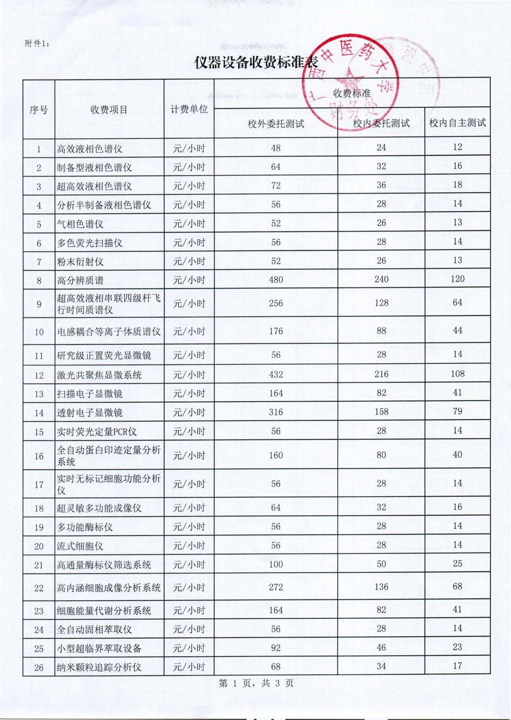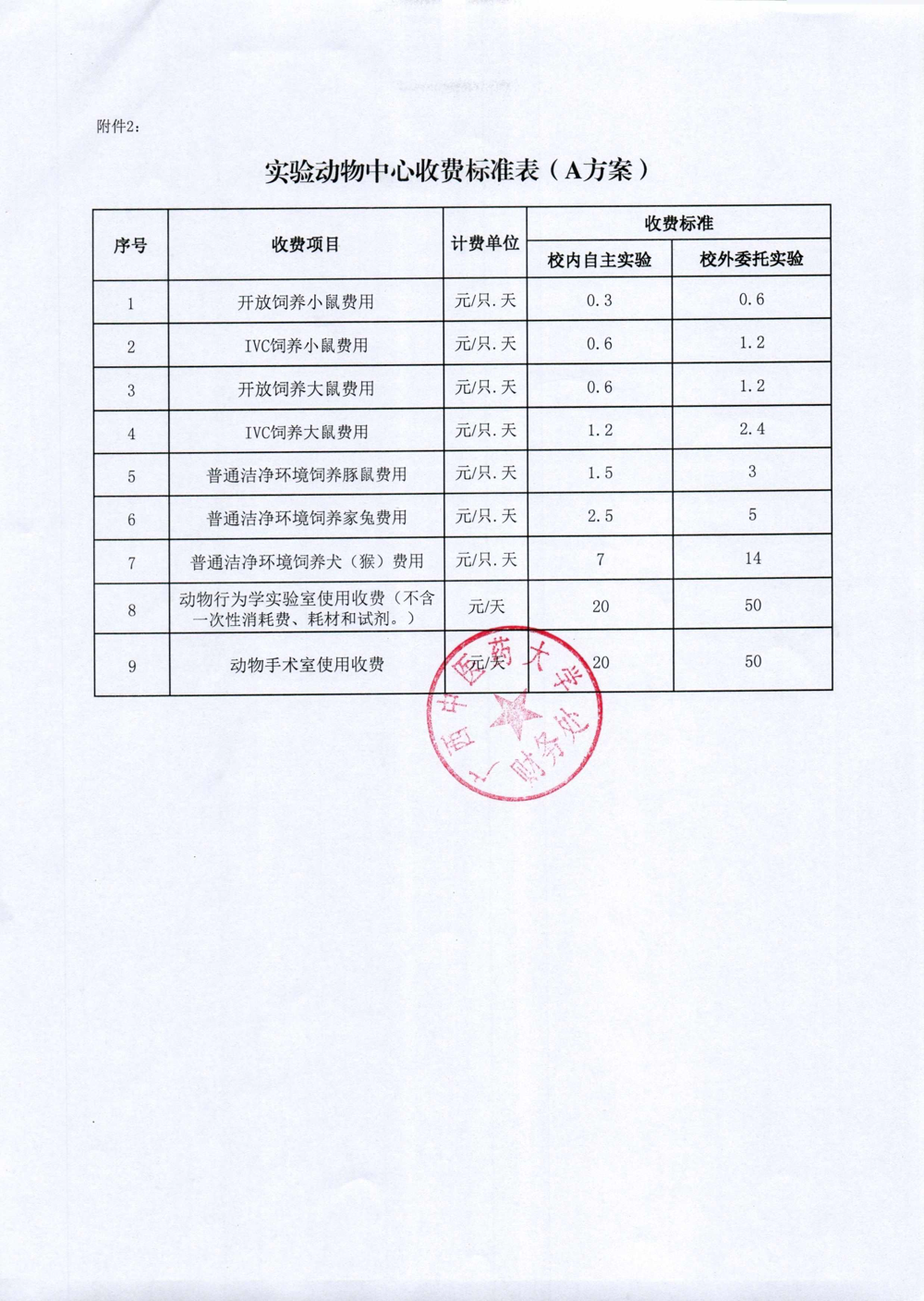 仪器和实验动物饲养收费标准