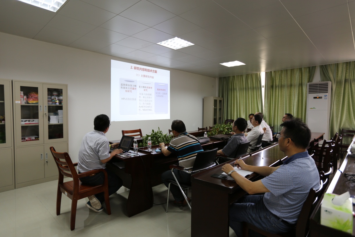 会上,中心副主任吴林教授对温肺降浊复方颗粒研究成果以及部分校内壮瑶医药相关研究作了详细的介绍。黄宇声副总经理对温肺降浊复方颗粒抗血管性痴呆的前期研究成果表达了高度赞赏并提出了相关设想和期望。双方就进一步深入合作交换了意见并达成共识。