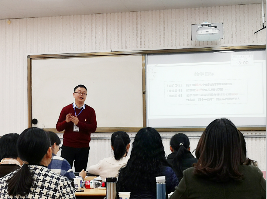 形势与政策教研室潘立在比赛现场作教学演示