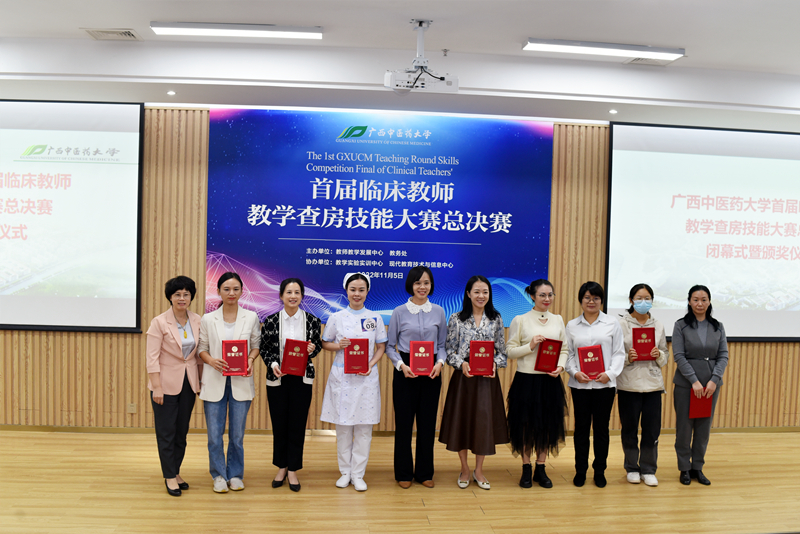 总决赛上,我院中医组、西医组及护理组共9支代表队与第一临床医学院、壮医临床医学院、第三临床医学院(柳州市中医医院)的22支队伍同台竞技。经过一天的激烈角逐,我院斩获一等奖2个(儿科赵敏芳、手术麻醉科廖华)、二等奖4个(产科刘卓、妇科一区韦林、胃肠外科高丕尧、消化内科二区庞春)、三等奖2个(中医经典病房冯原、胸心血管外科韦乐乐)、优秀奖1个(神经内科二区欧俐羽)及优秀组织奖1个,其中我院中医组及护理组代表队包揽总决赛第一名。
